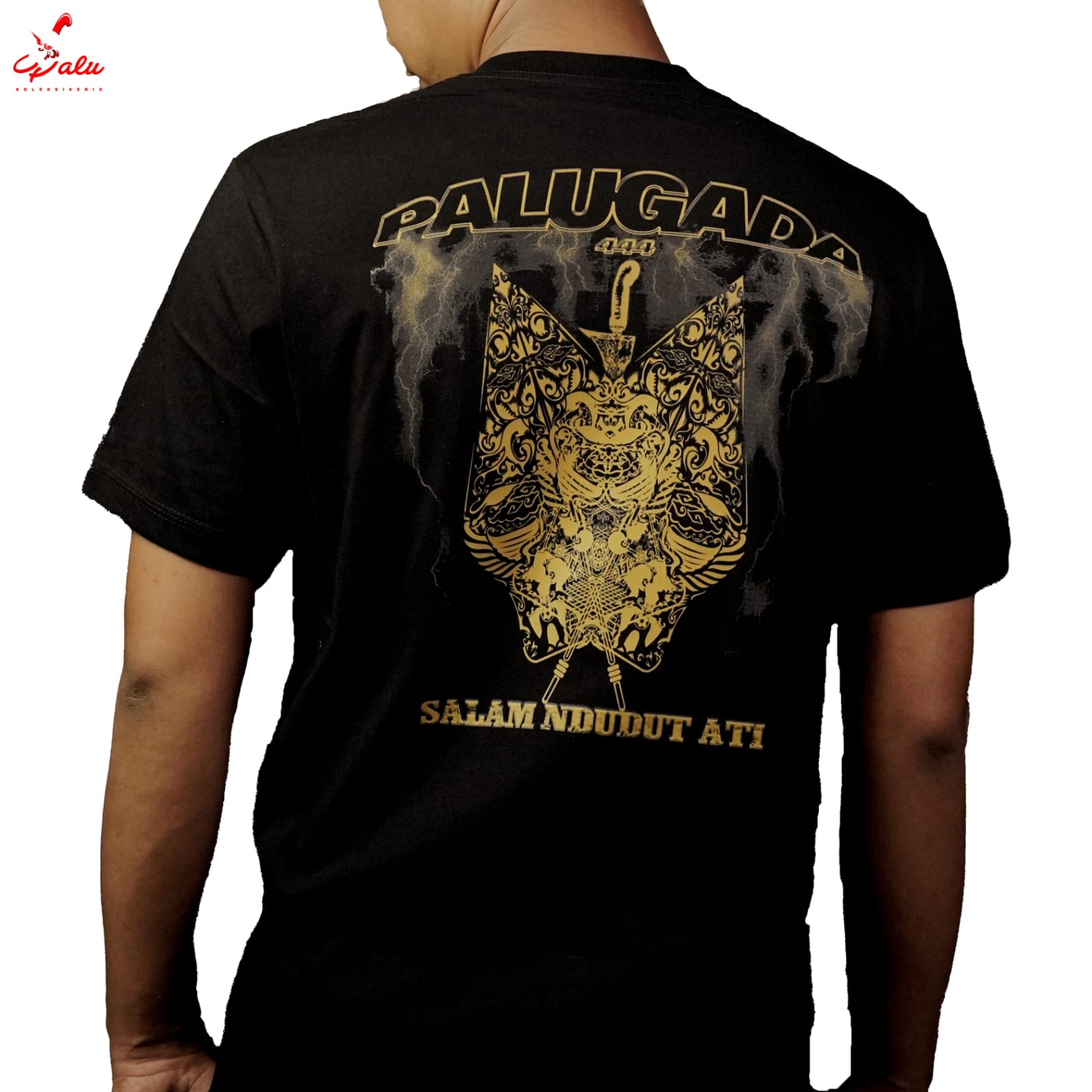 Perpaduan kekuatan tradisi dan gaya modern hadir dalam desain eksklusif kaos dari palugada444. Kaos ini menampilkan perpaduan antara dua simbol besar Nusantara: keris dan wayang. Keris, yang dikenal sebagai pusaka agung, melambangkan ketajaman pikiran, keberanian, dan spiritualitas yang mendalam. Sementara wayang, sebagai warisan seni pertunjukan yang kaya dengan filosofi hidup, mencerminkan perjalanan manusia dalam menghadapi dinamika kehidupan.