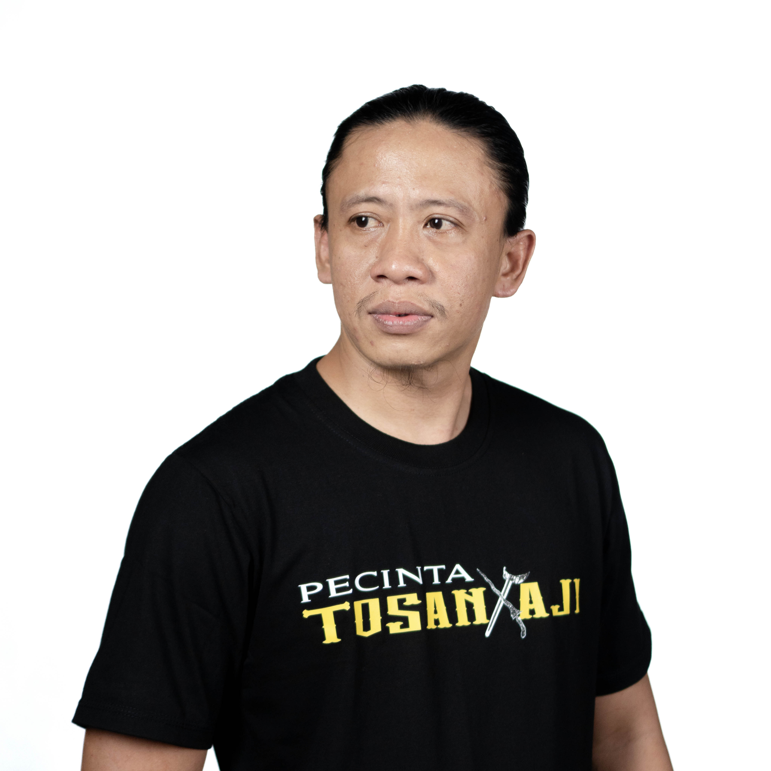 Desain Pecinta Tosan Aji dicetak menggunakan teknologi sablon DTF (Direct to Film) yang menghasilkan warna tajam, detail presisi, serta lebih awet dan tidak mudah retak atau pudar meskipun sering dicuci.