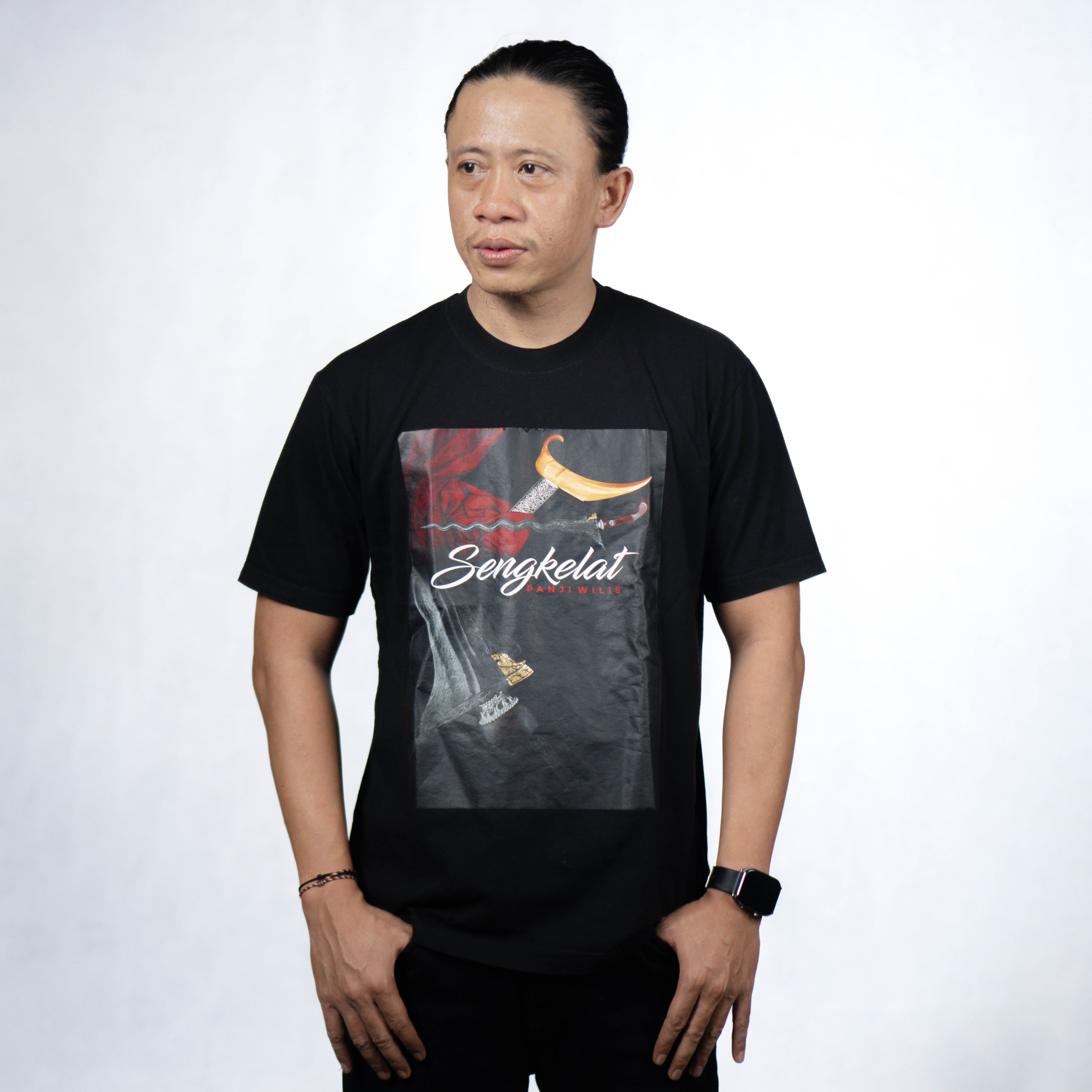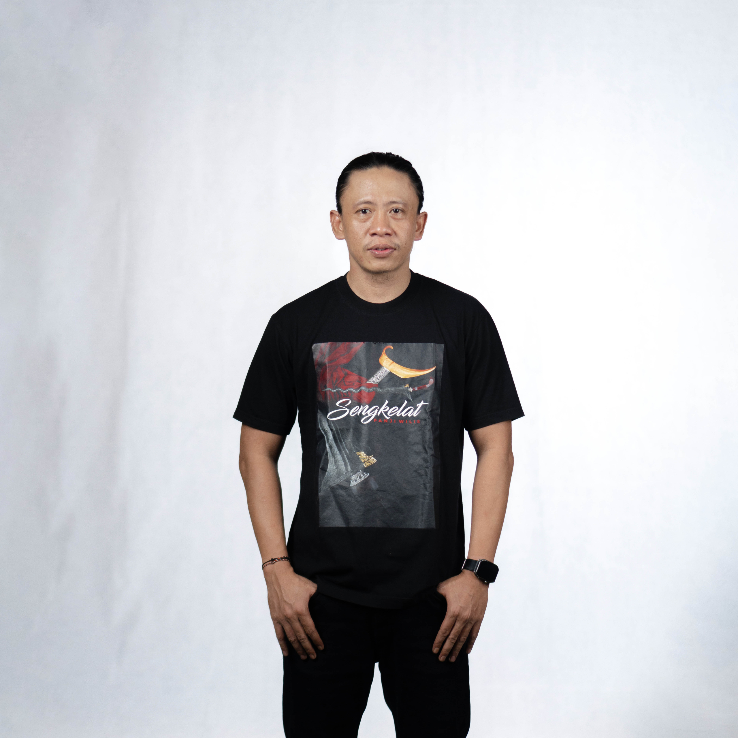 Hadirkan nuansa budaya dan filosofi Nusantara dalam gaya berpakaian Anda melalui Kaos Sengkelat Panji Wilis. Terinspirasi dari nama pusaka yang sarat makna, desain ini melambangkan kewibawaan, keteguhan, serta karakter yang kuat dan berkelas.