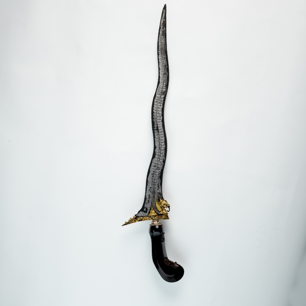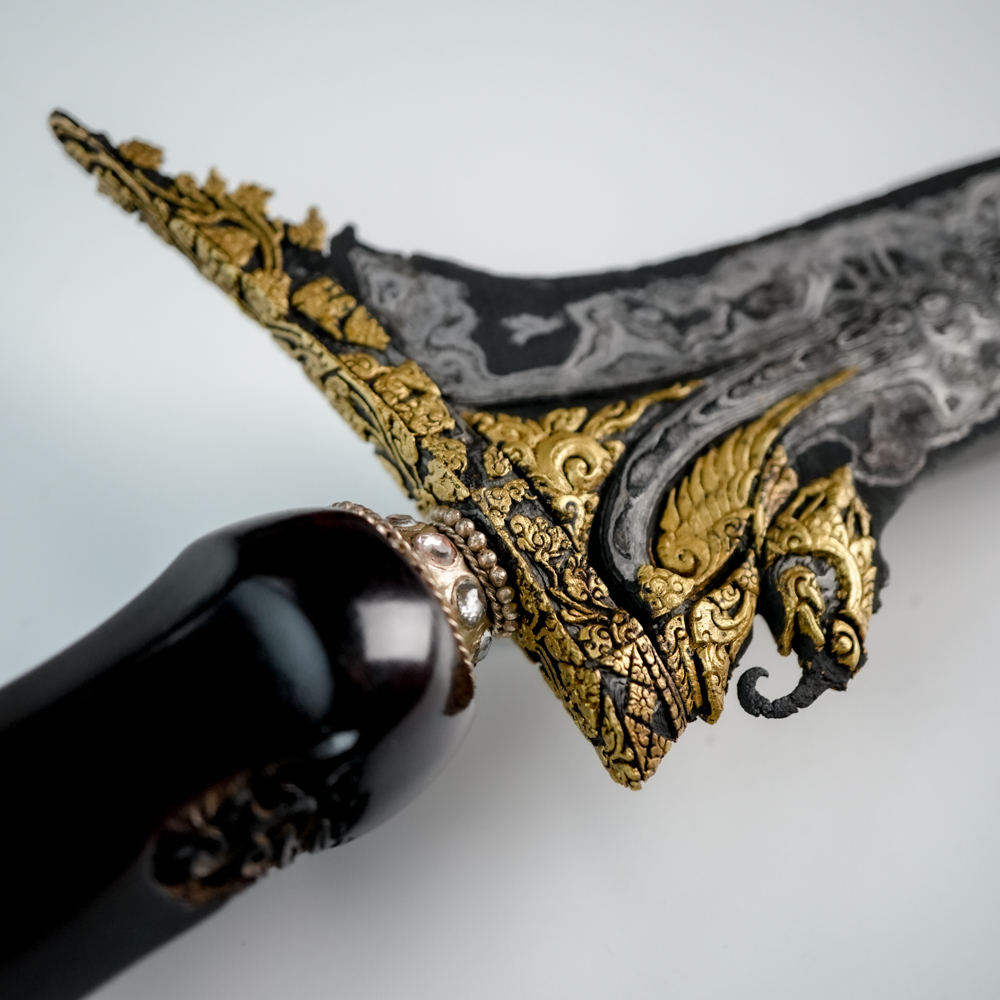 Mulai dari material besi dan pamornya yang luar biasa, pasikutannya yang gagah, hingga ornamen tinatah emas yang menegaskan kewibawaannya.