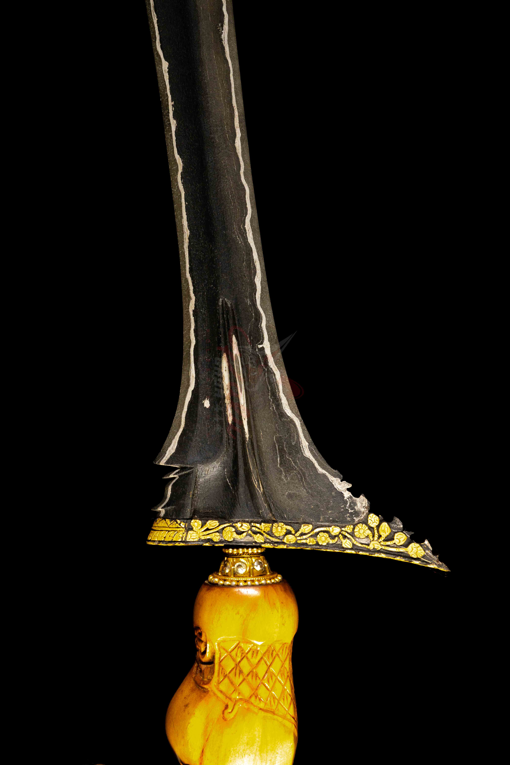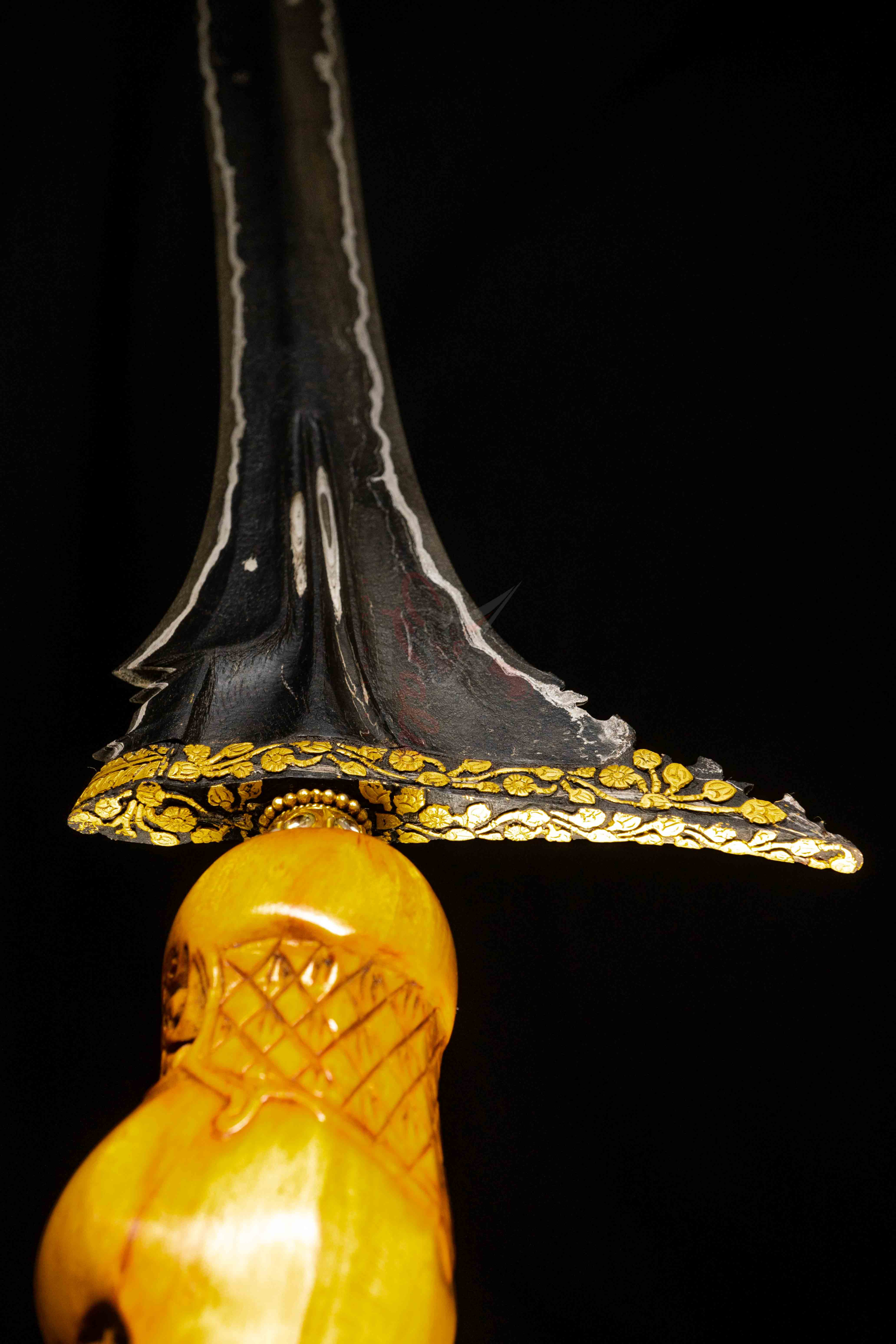 Selain itu, pamor Wengkon Isen yang terdapat pada bilahnya juga memiliki nilai esoteris tinggi. Pamor ini dipercaya memiliki kekuatan sebagai perisai perlindungan dan penangkal terhadap berbagai hal negatif. Kombinasi antara dhapur Pasopati, kinatah emas, dan pamor Wengkon Isen menjadikan keris ini sebagai pusaka yang tidak hanya indah secara estetika, tetapi juga sarat dengan makna spiritual dan kepemimpinan.