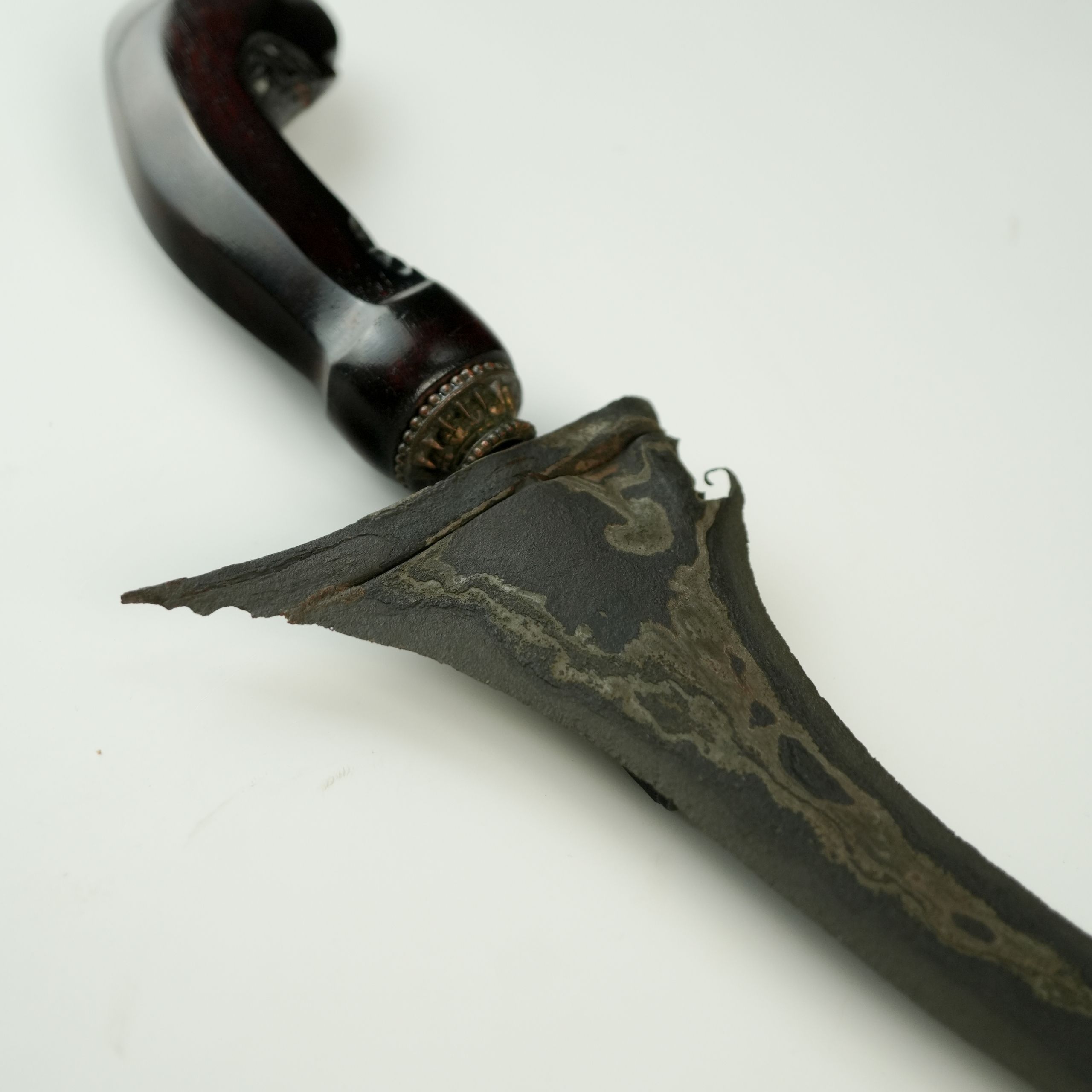 Rp 4.500.000Wedhung Wedung atau Wedhung adalah salah satu jenis senjata tradisional Jawa yang dulu merupakan kelengkapan pakaian pejabat keraton tertentu. Tidak seperti keris yang hanya dikenakan oleh pria, di keraton wedung bisa dikenakan pria dan wanita. Bentuk wedung seperti pisau pendek, ujungnya runcing, sisi depannya tajam, sedangkan punggungnya tumpul. Pada sisi depan bagian bawah ada bagian… selengkapnya