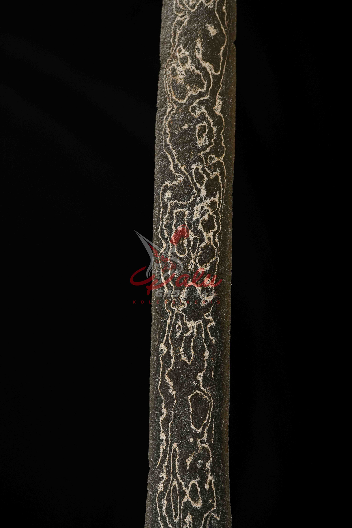 Pamor Wos Wutah—atau beras tumpah—ditandai dengan titik-titik putih kecil yang tersebar di permukaan bilah, menyerupai beras yang tercecer. Secara filosofis, pamor ini menggambarkan rezeki yang melimpah, sekaligus menjadi pameling (pengingat) dalam menjalani kehidupan berumah tangga.